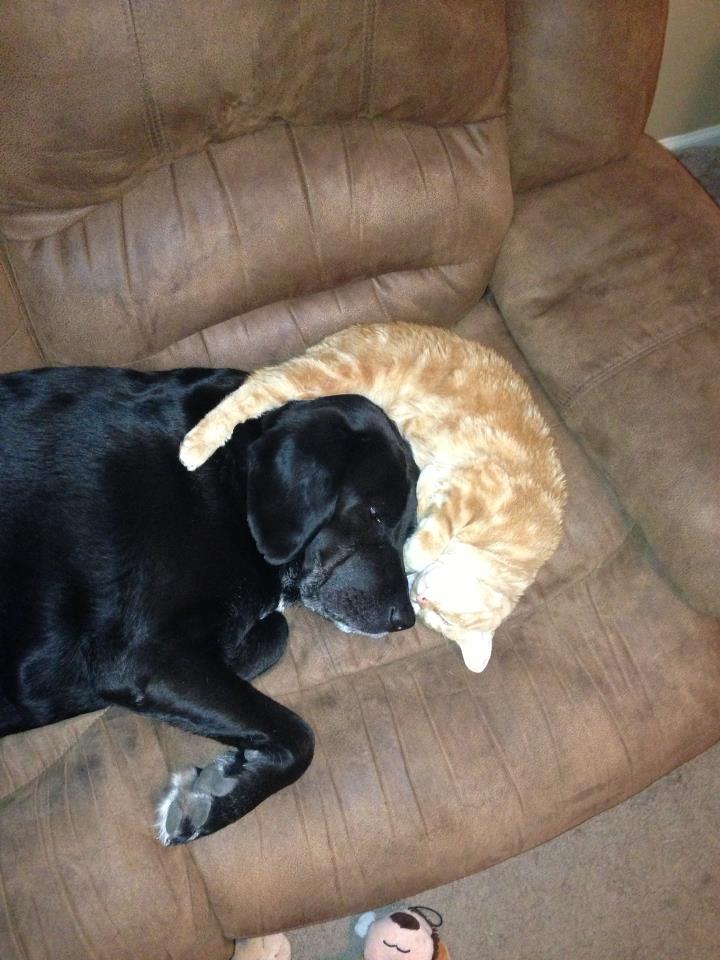 I am so very thankful that we did not separate them, because after a year, they still cannot get enough of each other. Charlie is the orange one and the cuddle bug. Ash is the little girl who only likes to be petted on her own terms. And don't worry, Bowen took them right under his wing...er...paw.